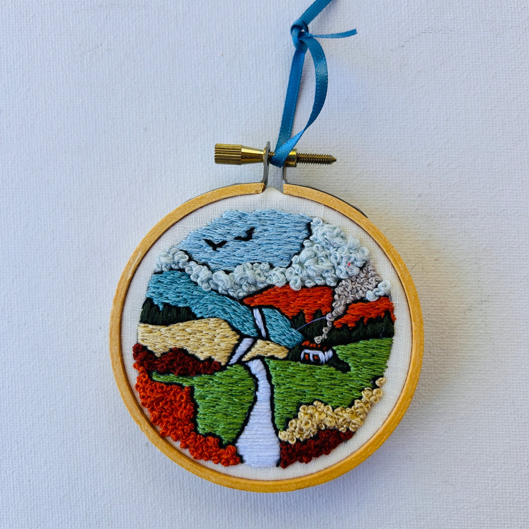 Meet Cozy Cabin View — a 3-inch escape to a place where the air smells like pine, the Wi-Fi doesn’t reach, and your only neighbor is a curious squirrel. 🌲 Hand-stitched with cozy texture and bold color, this little hoop delivers major mountain getaway energy without the bug bites.