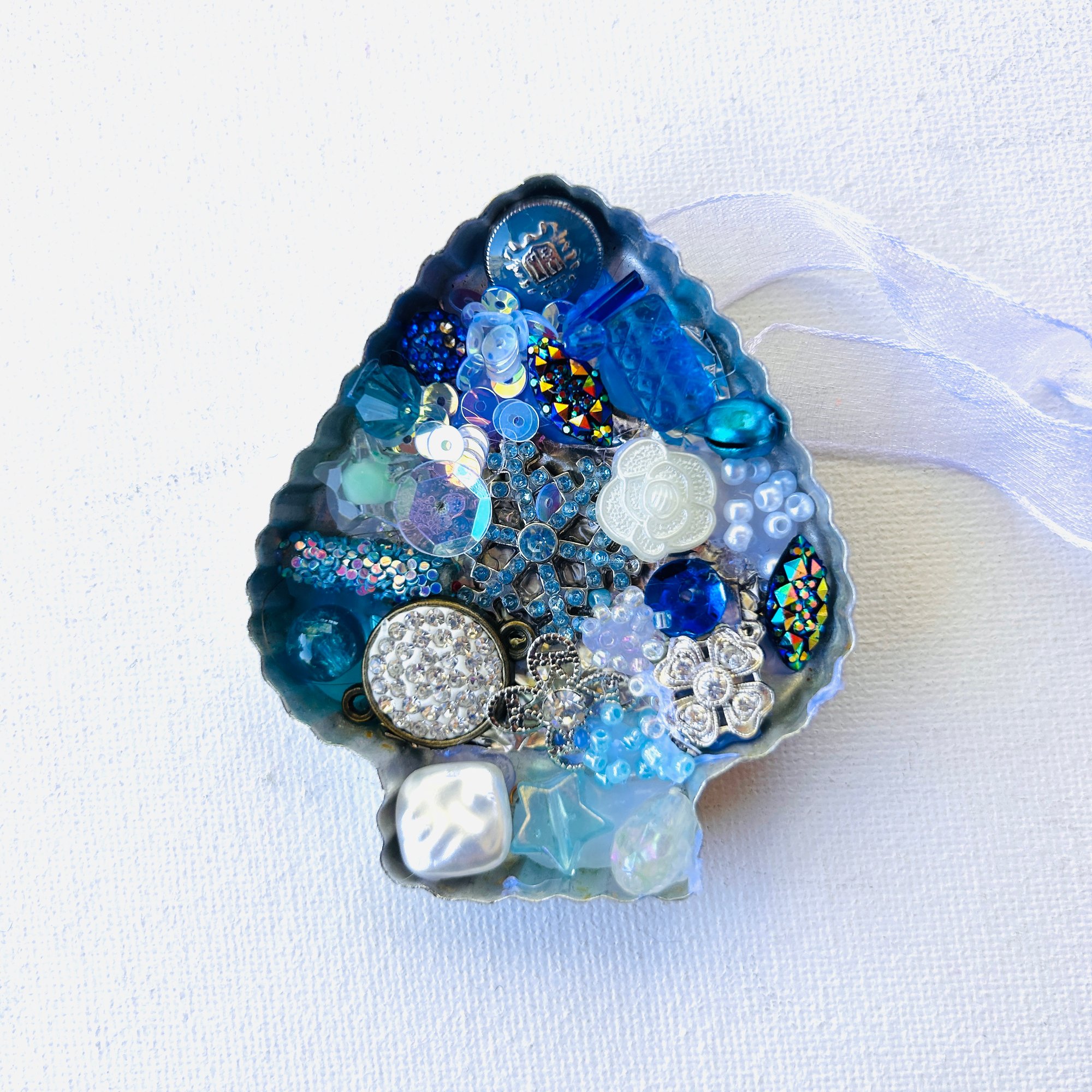 Meet your new favorite ornament: Vintage Bling — handmade from repurposed jewelry, sequins, beads, and a vintage cookie cutter that’s living its best second life. 💚✨ This little treasure is packed with old-school charm and just enough glitz to make your tree gasp.